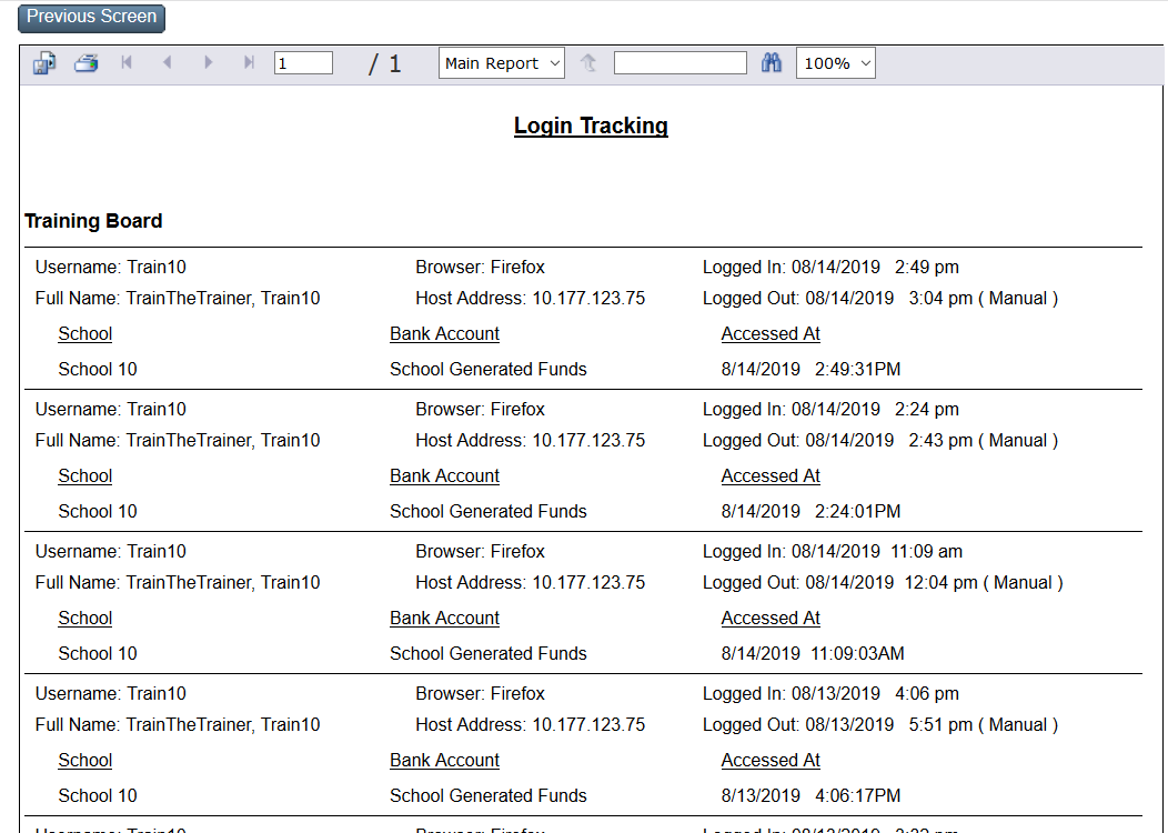 Main Menu > Program Maintenance > Table Maintenance > Login Tracking Report