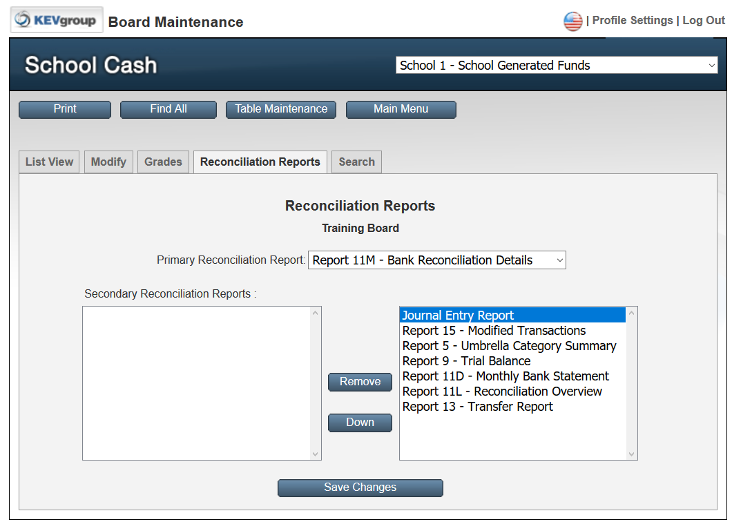 - Board Maintenance: Demographics / Reconciliation Report Set-up.