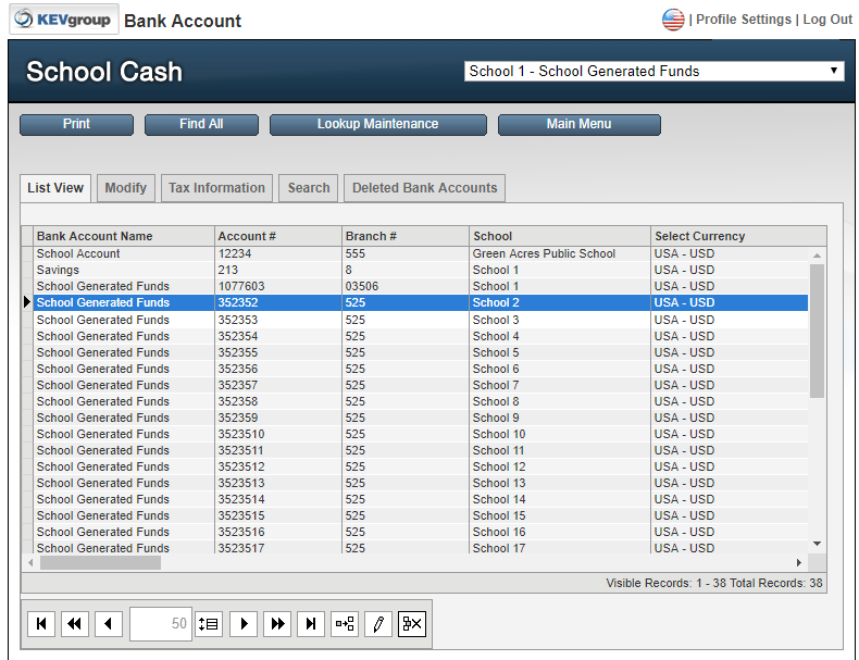 - Bank Accounts: Maintenance of School Cash Bank Accounts.