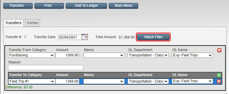 In SchoolCash Accounting, the Check, Deposit, and Transfer windows now include an Attach Files button. Here’s where to find it when processing checks and deposits: