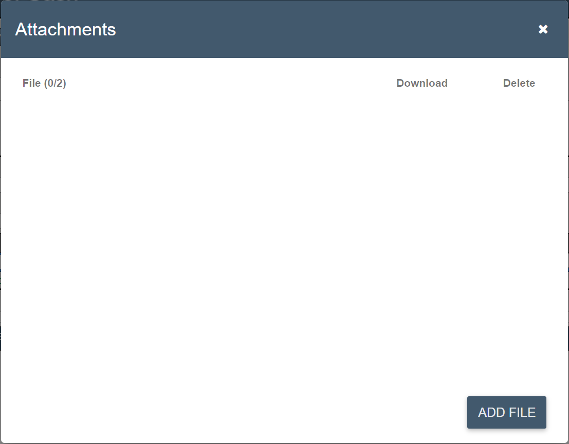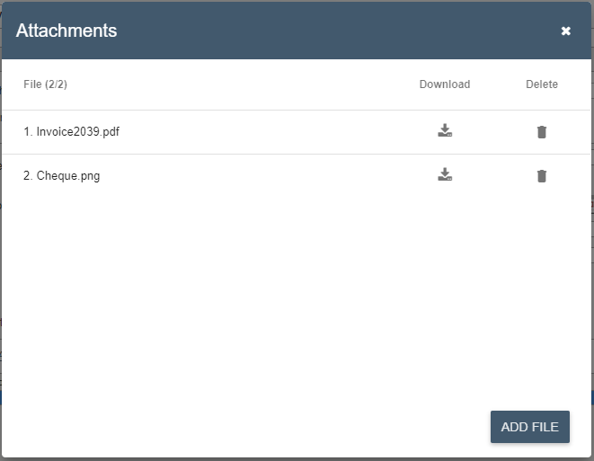 Clicking the link opens the file attachment pop-up, allowing users to add more files, download attachments, or delete files.