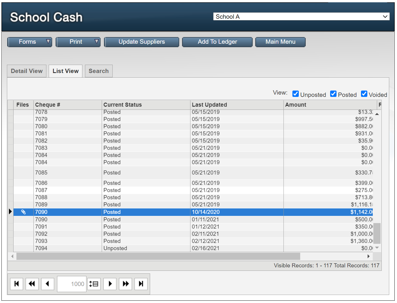 The new attachment function allows users to attach up to two files (maximum 25 MB each), including statements, invoices, or images, to any check, deposit, or transfer within the current fiscal year. This helps schools by: