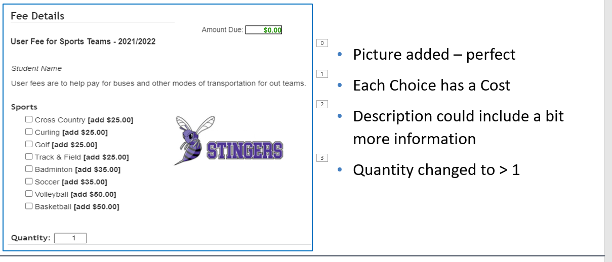 Outstanding Required Fees for Inactive Students (Inactive due to move to Middle or High School or from district)