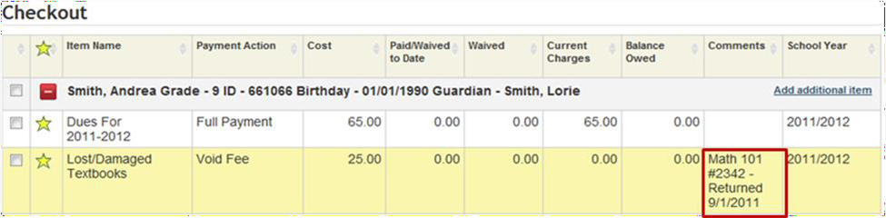 The star beside the Item Name indicates that it is a required item. All additional items entered in the School Cash Register are automatically flagged as Required.