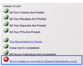 District-level users receive a notification on the To-Do List in the Accounting home page when a chargeback occurs. All chargebacks for applicable schools appear in a single notification.